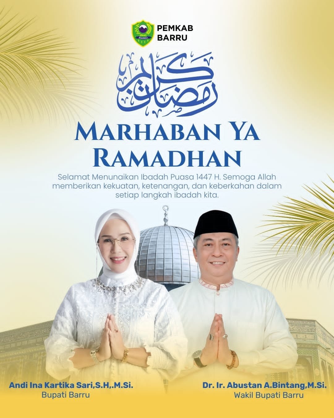 Marhaban Ya Ramadhan 1447 H. Semoga bulan suci ini membawa kedamaian, memperkuat keimanan, serta menumbuhkan semangat kebersamaan dalam membangun Kabupaten Barru yang lebih baik.
