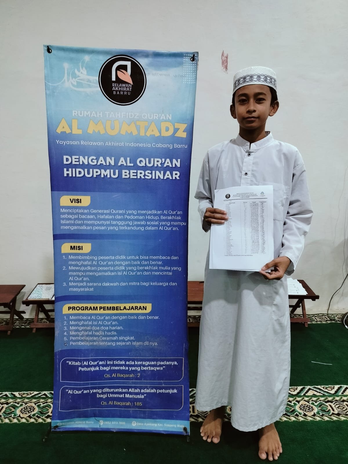 Barru – Nyataonline.web.id – Semangat belajar Al-Qur’an terus ditunjukkan oleh Apriansyah (13), seorang santri Rumah Tahfidz Qur’an Al Mumtadz Relawan Akhirat Indonesia (RAI) Barru yang berasal dari Wirae, Desa Ajakkang. Meski harus menjalani kehidupan tanpa sosok ibu yang telah meninggal dunia, siswa kelas VIII SMP Muhammadiyah ini tetap tekun menimba ilmu agama dan menghafal Al-Qur’an.