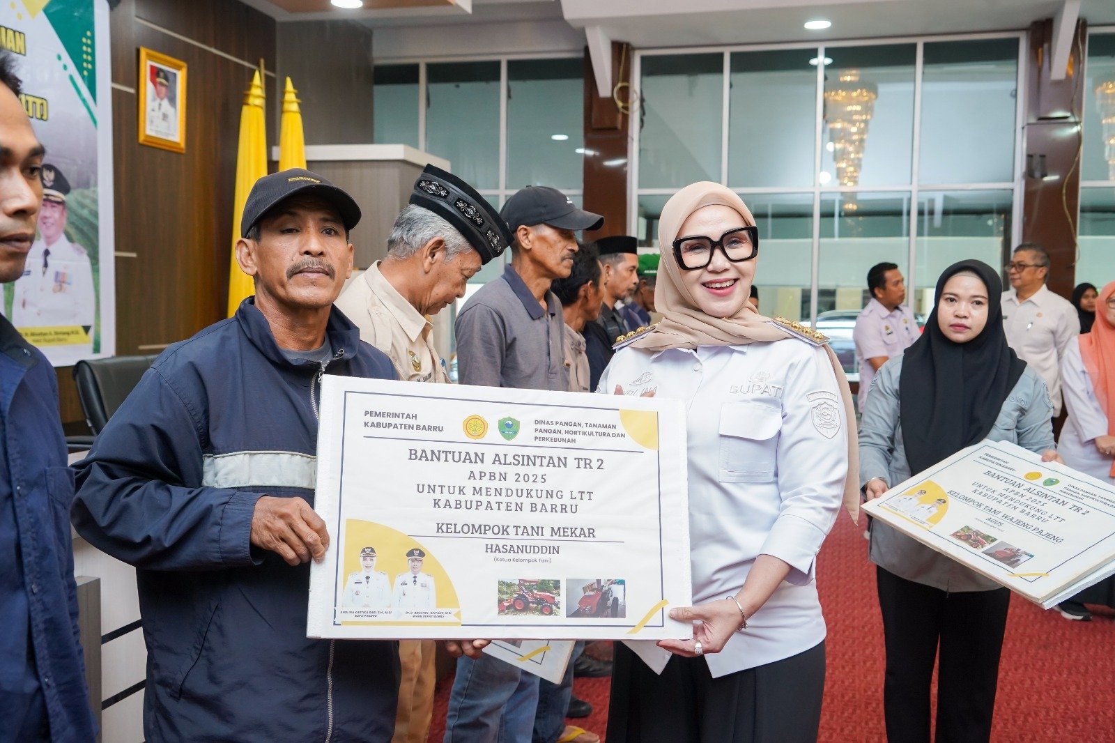 Barru – Bupati Barru, Andi Ina Kartika Sari, S.H., M.Si., menyerahkan bantuan Alat dan Mesin Pertanian (Alsintan) yang bersumber dari APBN Tahun 2025 untuk mendukung program Luas Tambah Tanam (LTT) di Kabupaten Barru. Penyerahan bantuan berlangsung di Baruga Singkeru Adae, Rabu (4/3/2026).