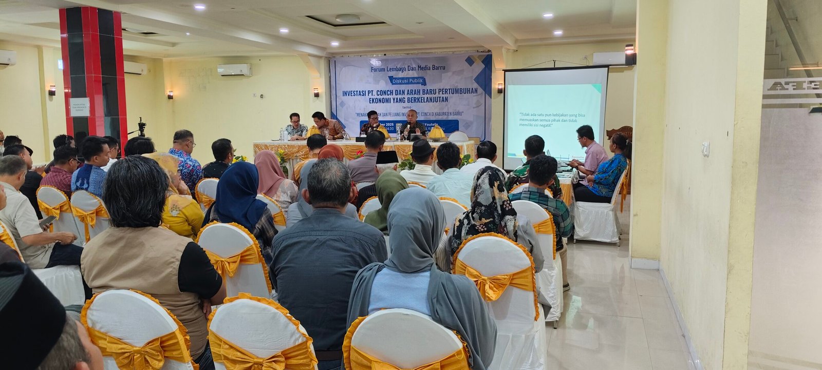 Beberapa peserta lainnya juga menyampaikan kekhawatiran bahwa diskusi publik tersebut justru berpotensi menimbulkan kesalahpahaman. Mereka menilai forum ini tidak memiliki standar representasi yang memadai sehingga tidak layak dijadikan rujukan untuk mengukur sikap masyarakat Barru terhadap PT. Conch.