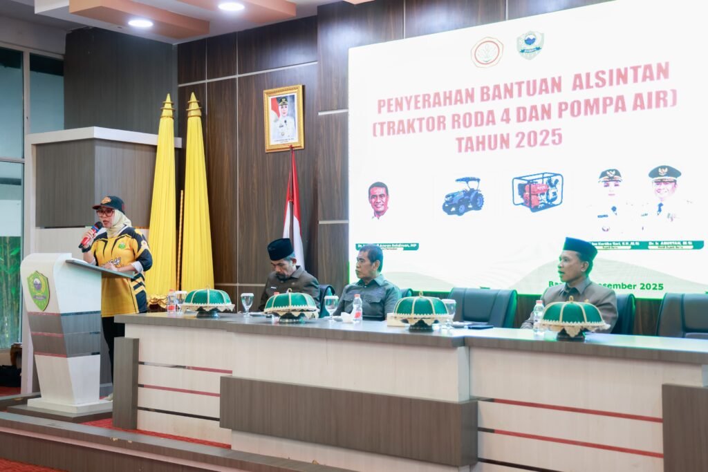 Barru — Nyataonline.web.id – Pemerintah Kabupaten Barru menegaskan komitmennya dalam mendukung program swasembada pangan nasional melalui penyerahan Bantuan Alat dan Mesin Pertanian (Alsintan) Tahun 2025 yang bersumber dari Kementerian Pertanian Republik Indonesia. Kegiatan tersebut berlangsung di Baruga Singkeru Adae, Rumah Jabatan Bupati Barru, Senin sore (29/12/2025).