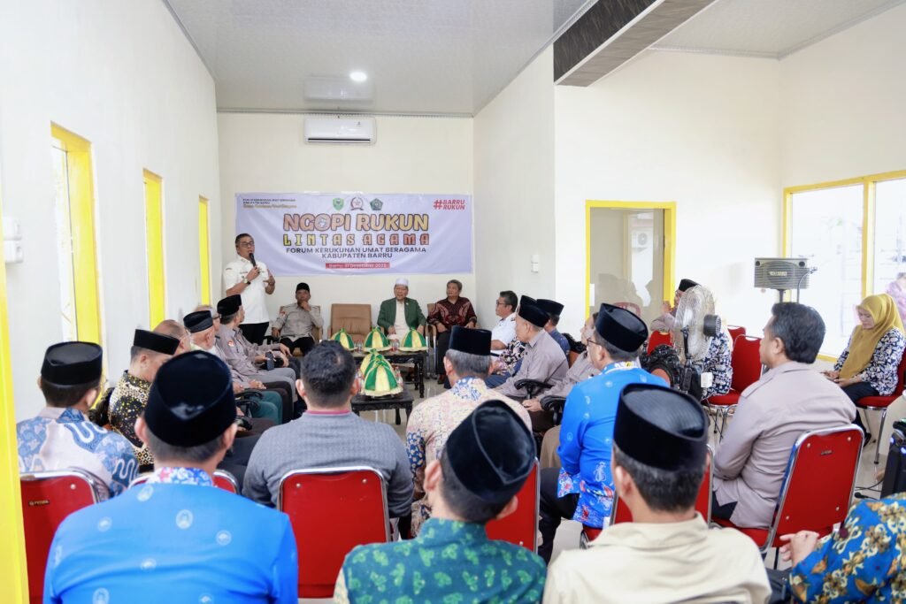 Barru — Nyataonline.web.id – Mewakili Bupati Barru Andi Ina Kartika Sari, S.H., M.Si., Wakil Bupati Barru Dr. Ir. Abustan A. Bintang, M.Si., menghadiri kegiatan Ngopi Rukun Lintas Agama yang diselenggarakan oleh Forum Kerukunan Umat Beragama (FKUB) Kabupaten Barru.
